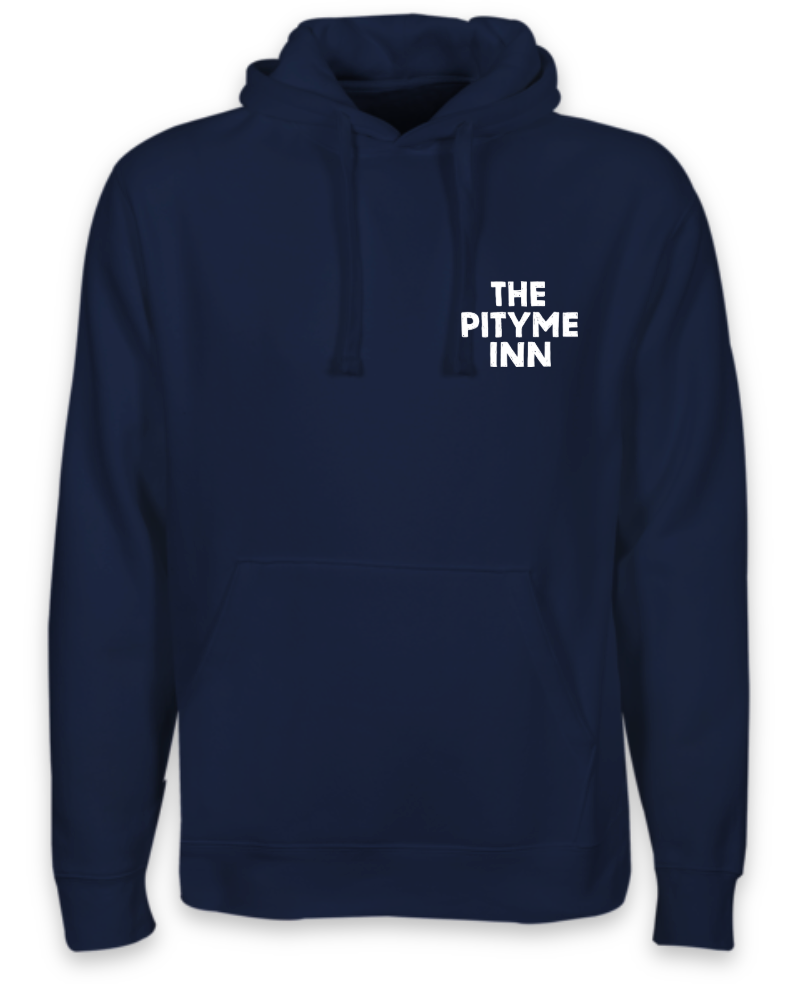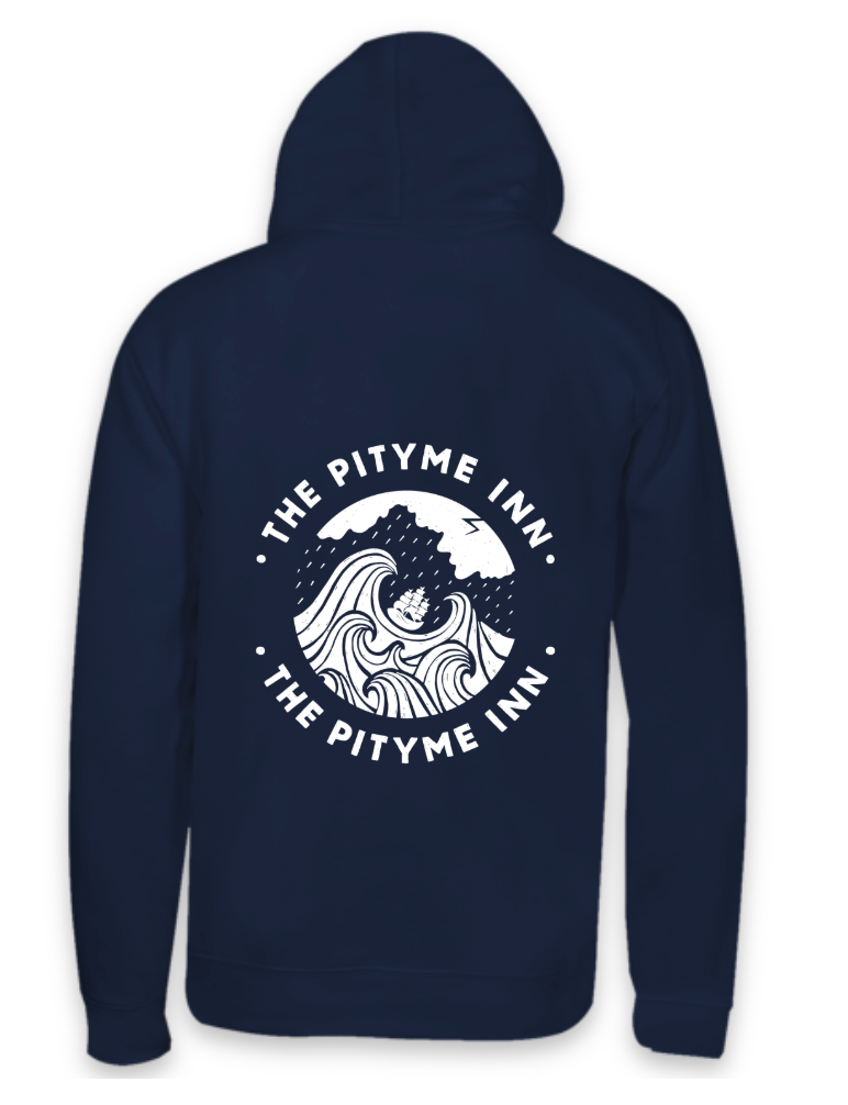 Our dark blue Hoodie with our distinctive logo and branding on the back and front
